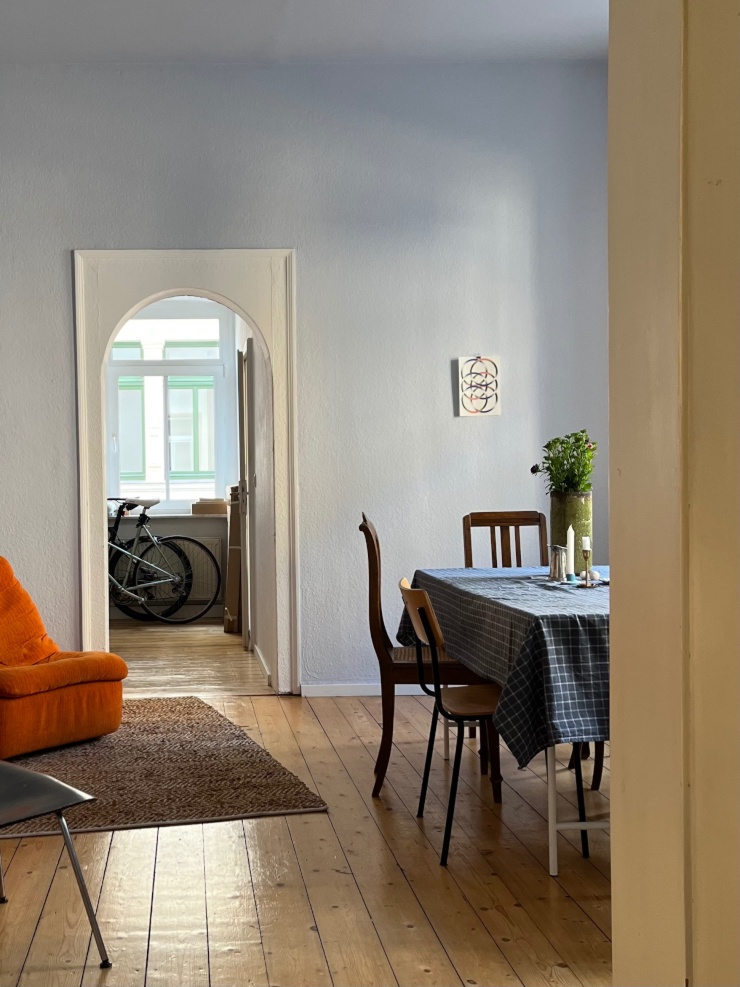 Der besondere Schnitt der Wohnung, die hohen Decken, die alten Holzdielen, die Küche mit der 50er Jahre Küchenzeile und das große quadratische Wohnzimmer verleihen der Wohnung eine besondere, kommunikative Atmosphäre. Perfekt für ein schönes Dinner mit Freund*innen oder einen ruhigen, gemütlichen Abend allein oder zusammen.