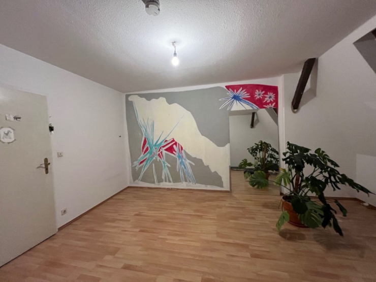 du wirst in eine von zwei Dachgeschosswohnungen ziehen, die sich gegenüberliegen und gemeinschaftlich von einer 6er WG geteilt werden. Es gibt eine große Wohnküche, ein Arbeits(Gemeinschafts)zimmer und zwei Badezimmer. Dein Zimmer ist ca. 19qm groß und unmöbliert und hat ein schönes Dachfenster das Richtung Süden rausgeht.