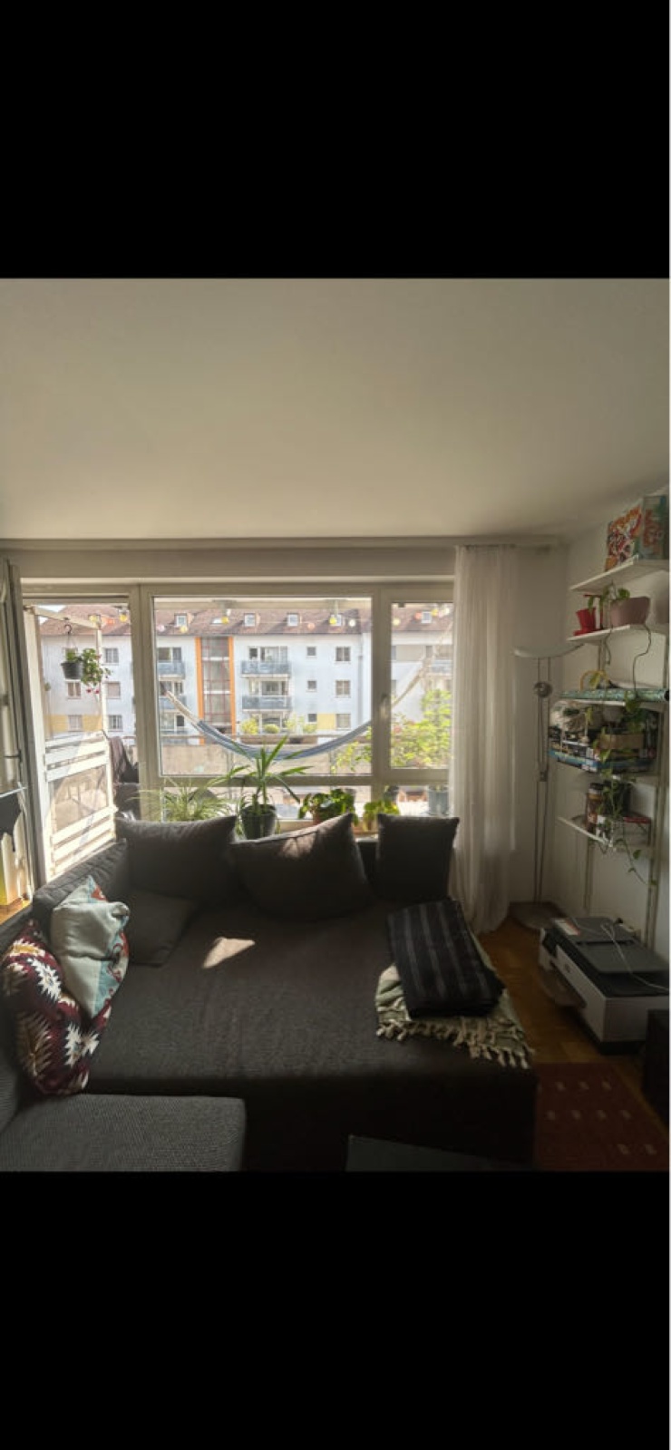 Das Zimmer ist 10-11 qm groß und gut ausgeleuchtet. Da die Wohnung ein sehr großes Ess-/Wohnzimmer, ein geraumiges Bad und einen Balkon hat, hat man im Vergleich zu anderen WGs sehr viel Platz und tolle Möglichkeiten zum Zusammensitzen. Die Küche ist mit einem großen Kühlschrank, einem großen Gefrierfach, Backofen und einer Spülmaschine sehr gut ausgestattet und im Keller gibt es sowohl ein großes Fahrradabteil als auch ein eigenes, abschließbares Abteil für die WG. Auch wenn das Zimmer nicht sonderlich groß ist, gleicht der grosse Wohnraum es etwas aus. Die Wohnung wird vom Bauverein vermietet, es kommen keine weiteren Kosten hinzu.