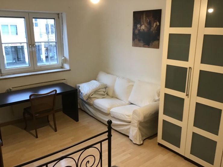 Das Zimmer ist komplett möbliert mit Bett, Schrank, Schreibttisch und einem Regal. In der WG gibt es insgesamt 2 Bäder und ein Wohnzimmer. Wohnzimmer und Küche laden ein zum verweilen, vielleicht bei einem Glas Wein. Wir haben zudem Kabelfernsehen und wahnsinnig schnelles Internet.