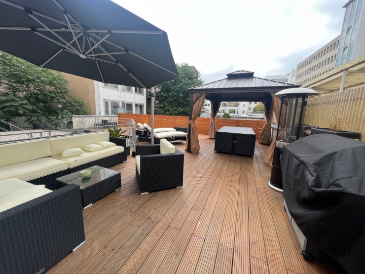 Ebenfalls mit übernommen werden muss: 1 Pavillon auf der Dachterrasse, der sich nicht mehr abmontieren lässt, NP 2000€. Zusammen per Zeitwert zu fairem verkaufspreis von 5820(pro Person also Abschlag von knapp 2000€-1164€ je nachdem ob 3er oder 4/5er WG.