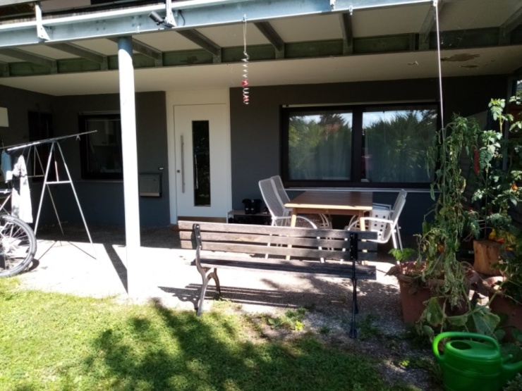 Einliegerwohnung mit eigenem Eingang, 2 Zimmern, Einbauküche, neuem Bad und einem kleinen Abstellraum. Insgesamt ca 46qm qm. Dazu kommt eine sehr große überdachte Terrasse und Garten Mitbenutzung.